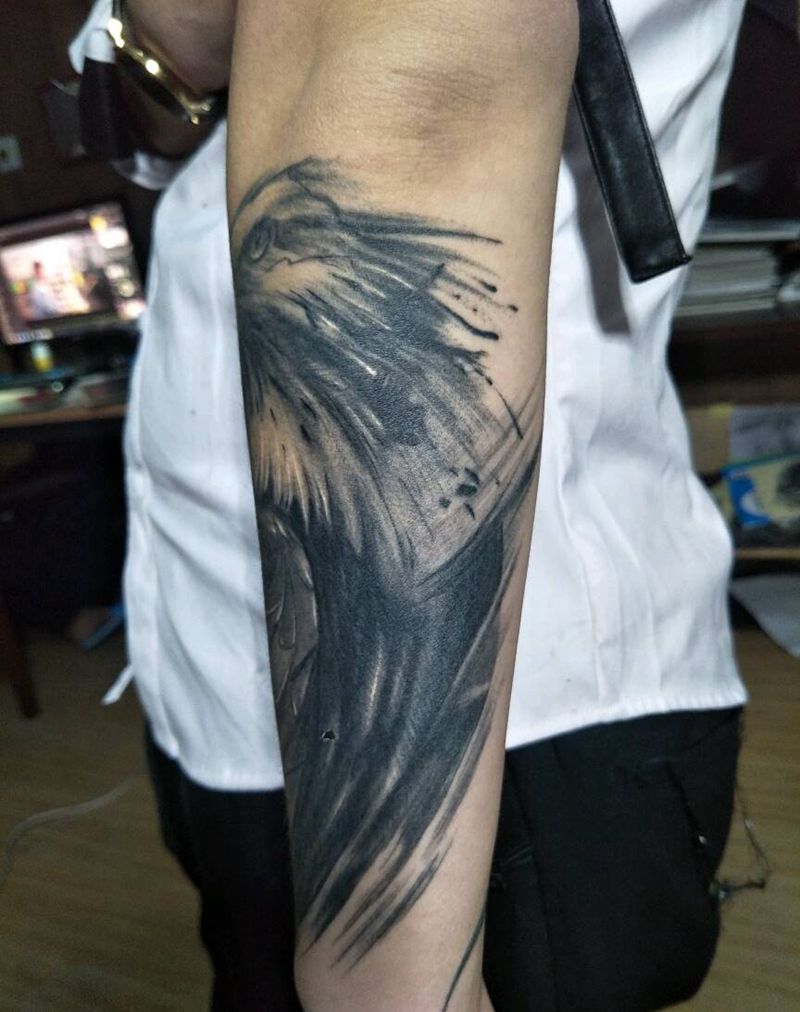 当前位置: 首页 >河北省秦皇岛市纹身店-雾隐刺青纹身图案>水墨鹰纹身图片