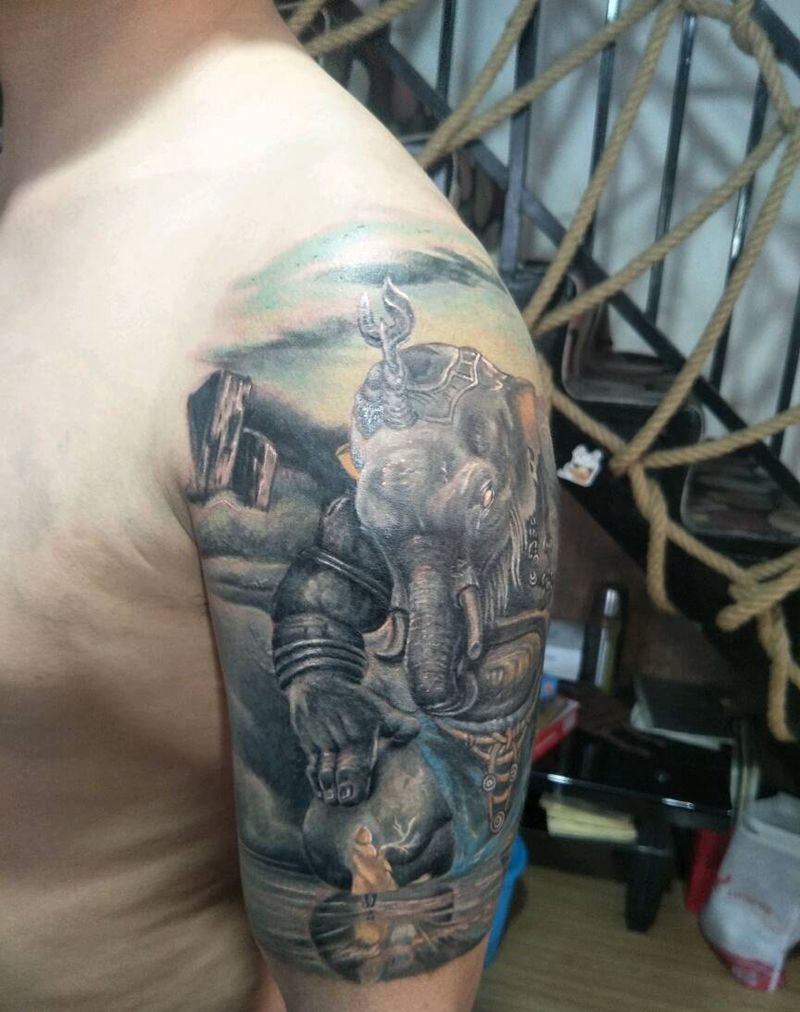 当前位置: 首页 >河北省秦皇岛市纹身店-雾隐刺青纹身图案>象神遮盖纹身图片