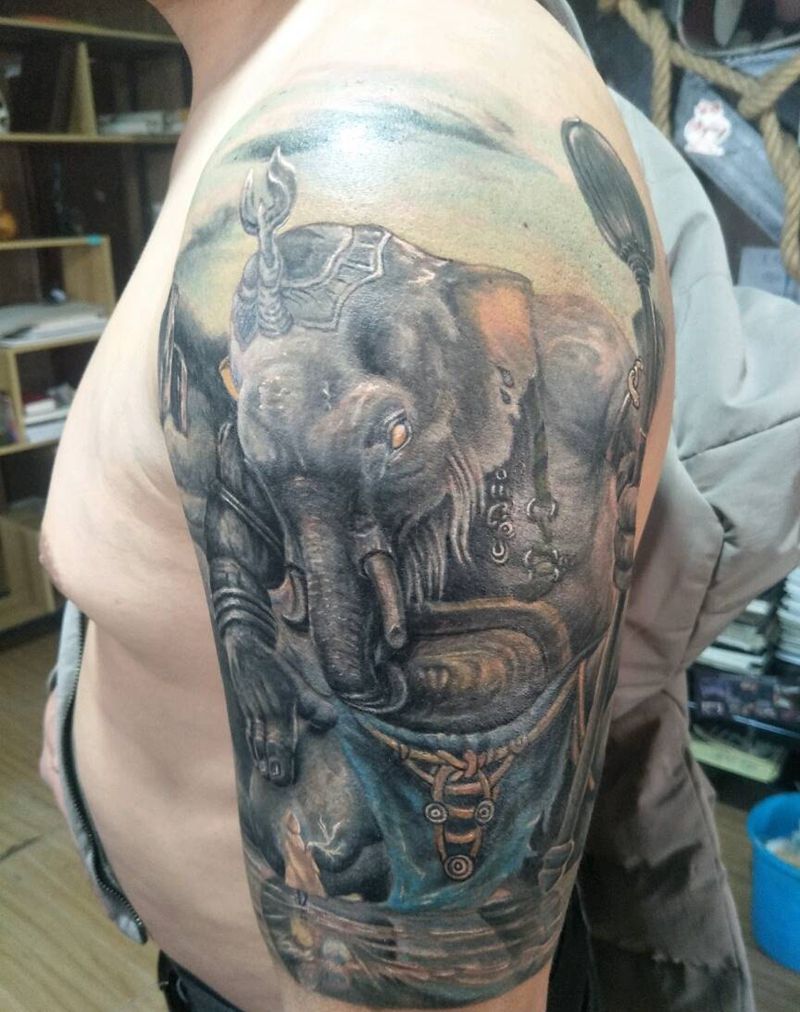 当前位置: 首页 >河北省秦皇岛市纹身店-雾隐刺青纹身图案>象神遮盖纹身图片
