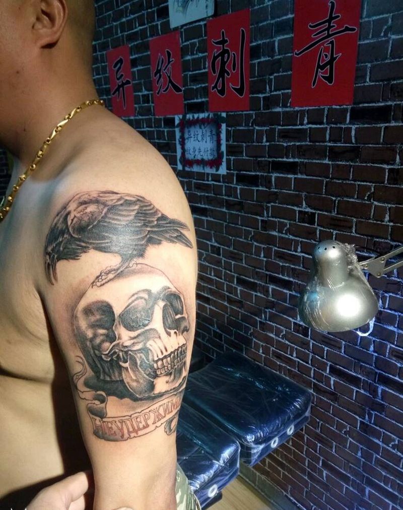 敢死队纹身图片_肩部欧美鬼神宗教纹身图案