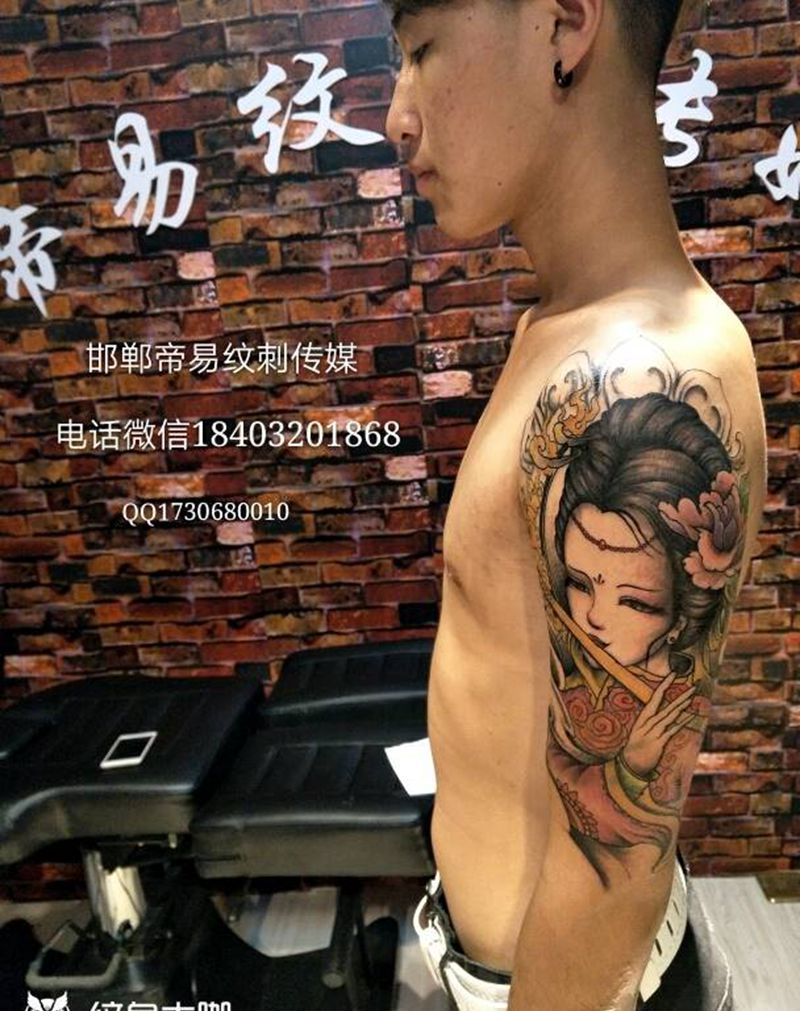 当前位置: 首页 >河北省邯郸市纹身店-帝易纹身总师父店纹身图案>美女纹身图片_肩部传统人物成品纹身图案