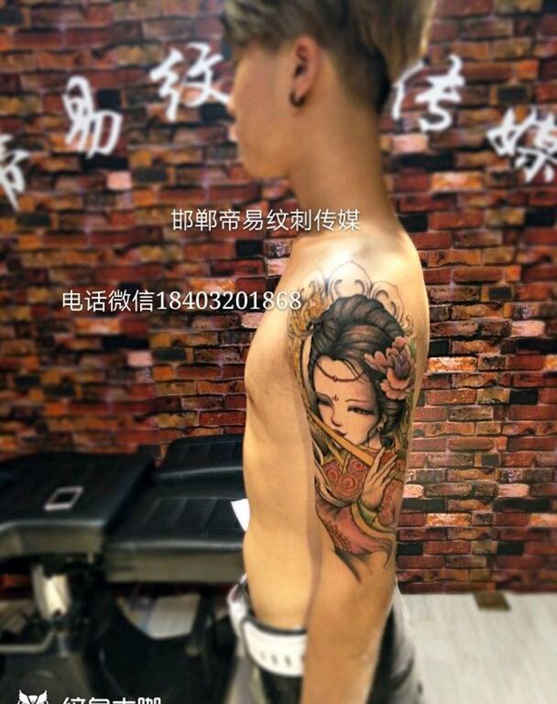 当前位置: 首页 >河北省邯郸市纹身店-帝易纹身总师父店纹身图案>美女纹身图片_肩部传统人物成品纹身图案