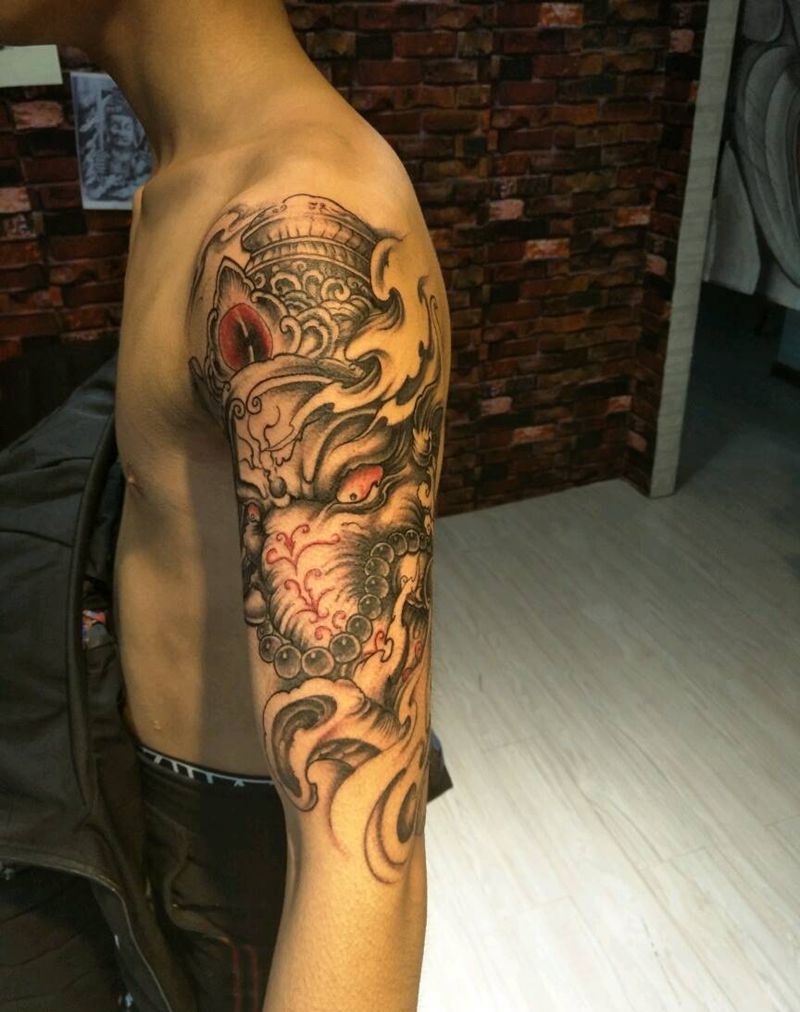 当前位置: 首页 >河北省邯郸市纹身店-帝易纹身总师父店纹身图案>象神纹身图片_肩部传统鬼神成品手稿纹身图案