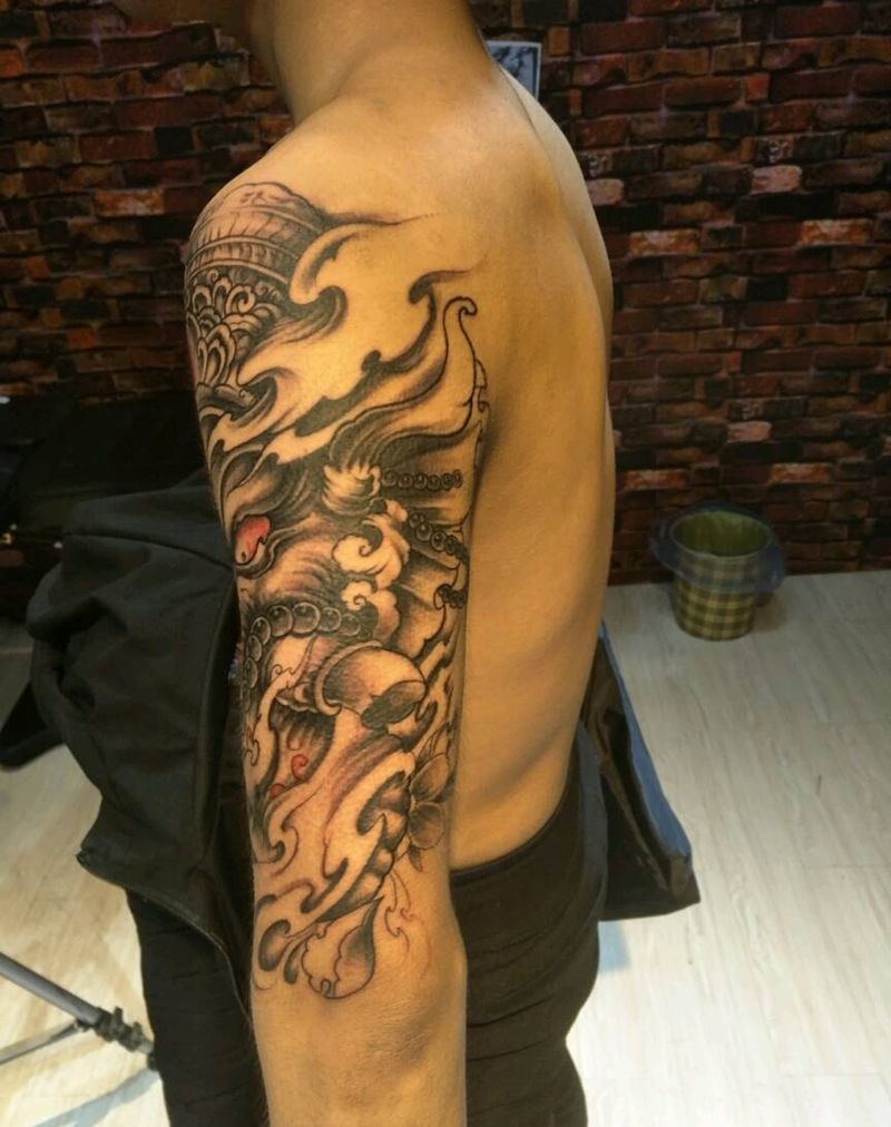 当前位置: 首页 >河北省邯郸市纹身店-帝易纹身总师父店纹身图案>象神纹身图片_肩部传统鬼神成品手稿纹身图案