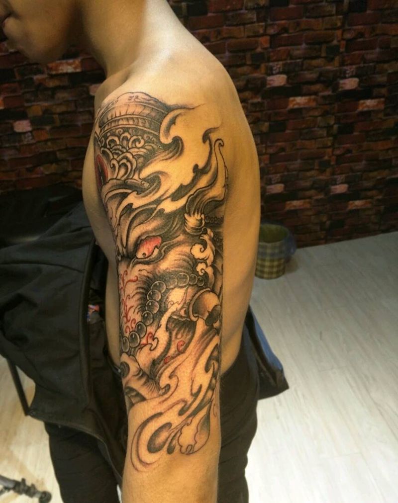 当前位置: 首页 >河北省邯郸市纹身店-帝易纹身总师父店纹身图案>象神纹身图片_肩部传统鬼神成品手稿纹身图案