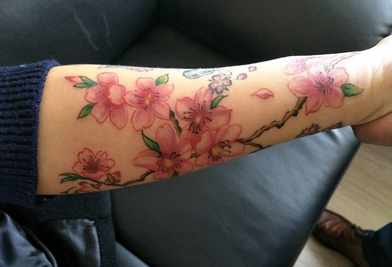 当前位置: 首页 >河北省邯郸市纹身店-帝易纹身总师父店纹身图案>招财招桃花纹身图片_手臂传统清新动物静物鬼神成品纹身图案
