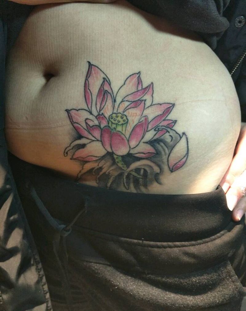 遮盖纹身图片_腹部传统植物成品纹身图案