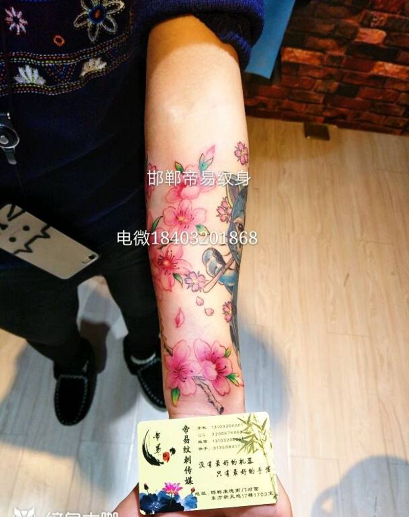 当前位置: 首页 >河北省邯郸市纹身店-帝易纹身总师父店纹身图案>招财纹身图片_手臂传统写实植物鬼神成品纹身图案