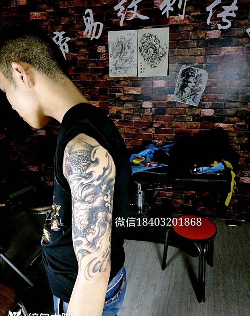 当前位置: 首页 >河北省邯郸市纹身店-帝易纹身总师父店纹身图案>象财神纹身图片_肩部传统鬼神成品纹身图案