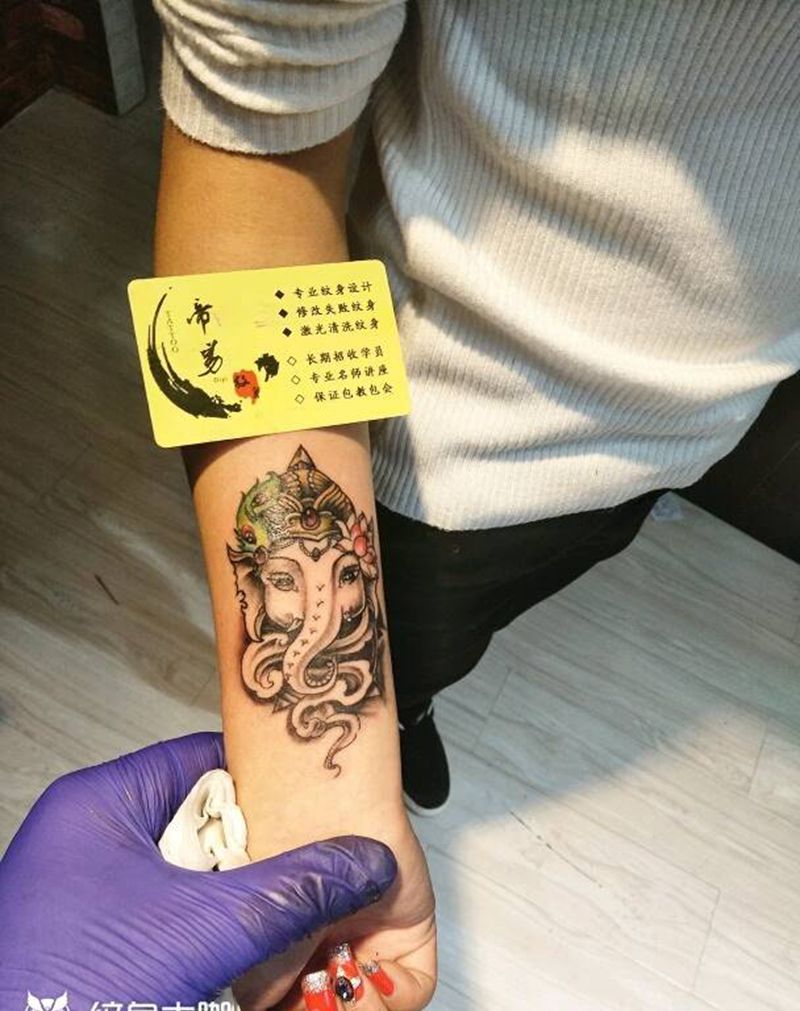 当前位置: 首页 >河北省邯郸市纹身店-帝易纹身总师父店纹身图案>小象财神神纹身图片_手臂传统鬼神成品纹身图案