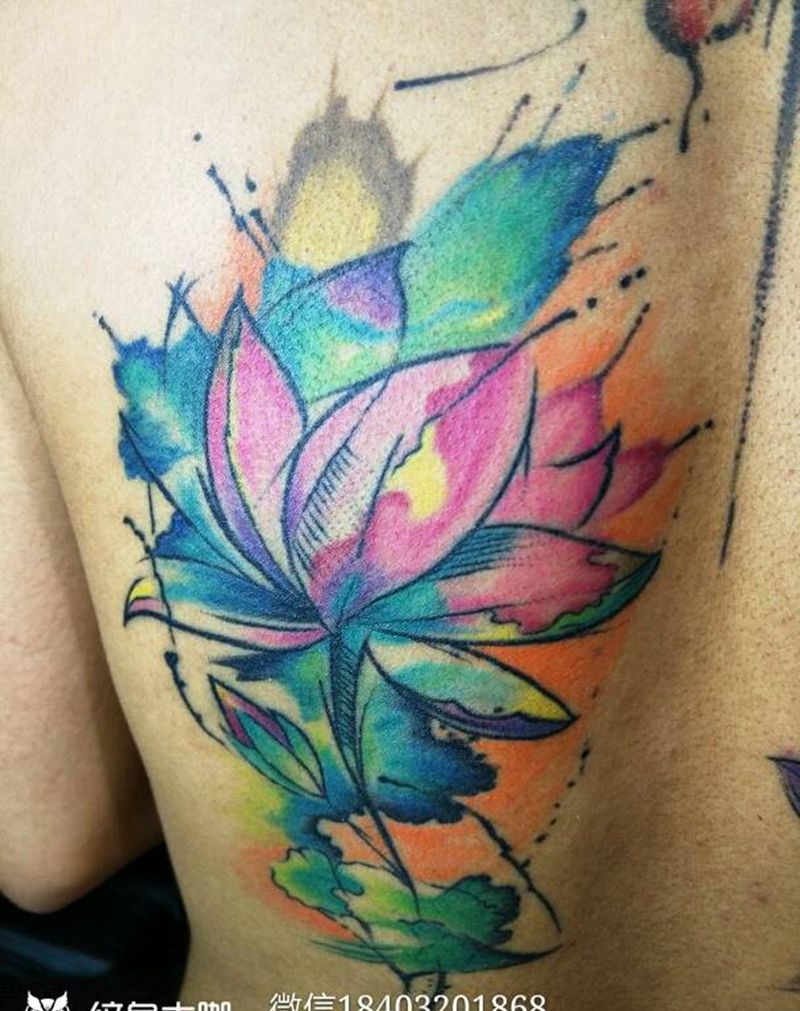 水彩花纹身图片_颈部背部手臂腿部手部脚部清新字符成品手稿纹身图案