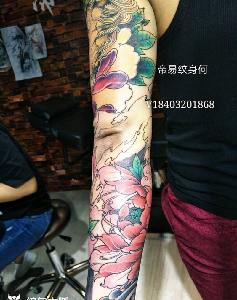彩色花臂纹身图片_手臂传统动物植物成品纹身图案