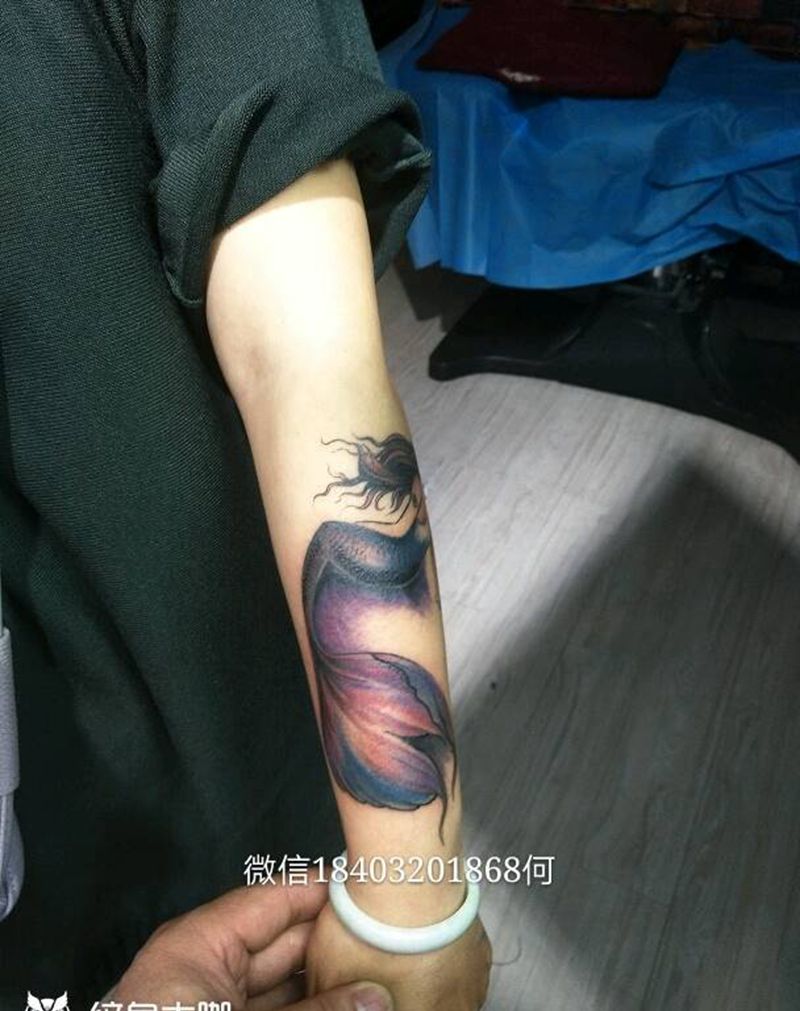 美人鱼纹身图片_手臂清新人物成品手稿纹身图案