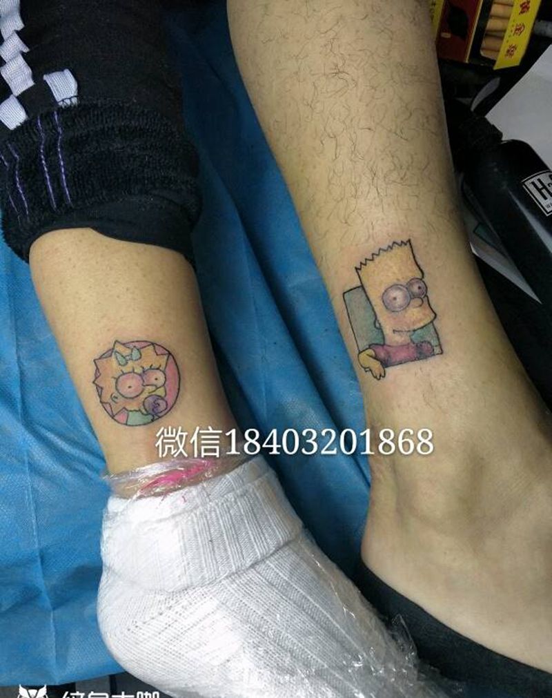 情侣纹身图片_腿部欧美原创插画纹身图案