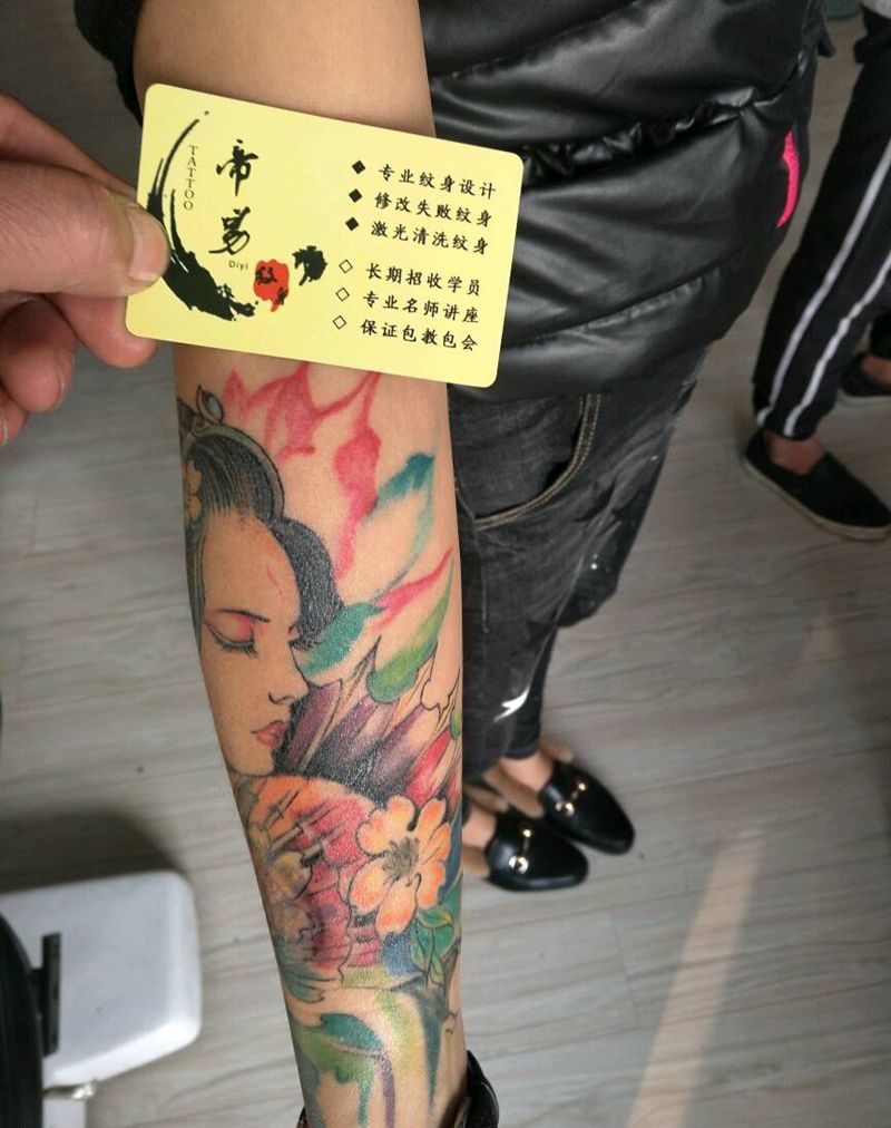 当前位置: 首页 >河北省邯郸市纹身店-帝易纹身总师父店纹身图案>艺妓纹身图片_手臂传统人物成品纹身图案