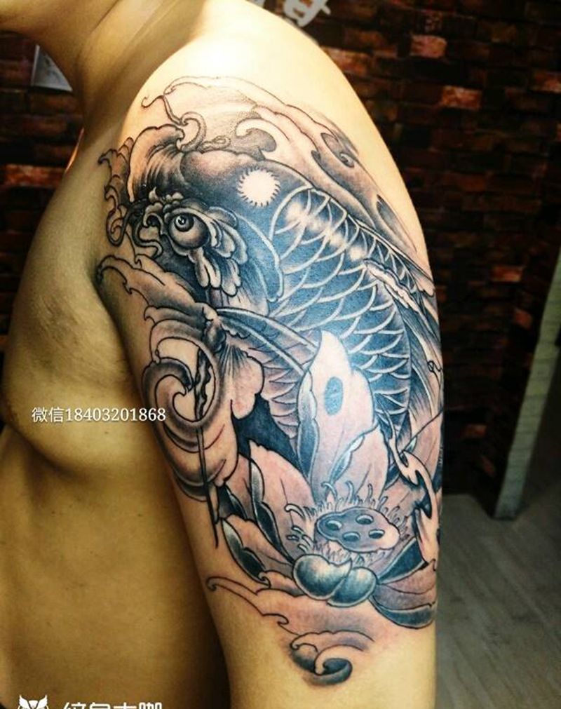 招财锦鲤纹身图片_肩部胸部手臂腿部传统动物成品纹身图案