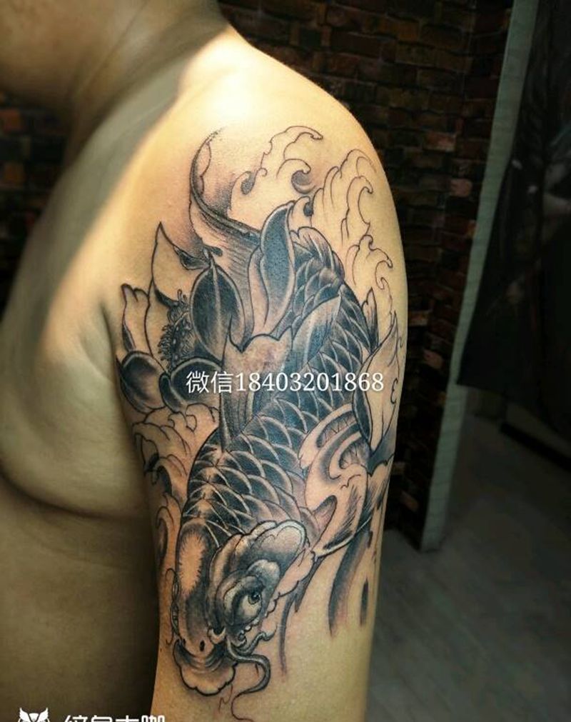 招财鱼纹身图片_肩部手臂传统动物成品纹身图案