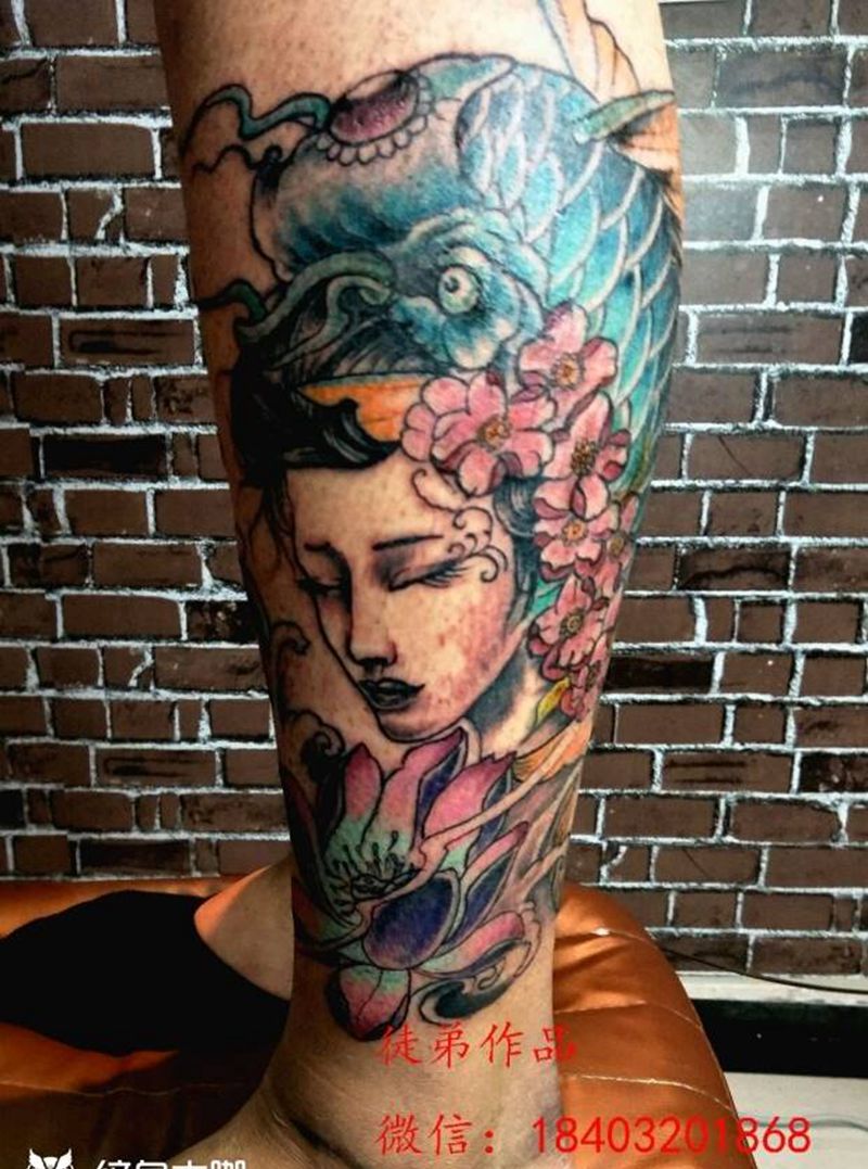 当前位置: 首页 >河北省邯郸市纹身店-帝易纹身总师父店纹身图案>驻店师傅扎的美女纹身图片_腿部脚部传统动物人物成品手稿纹身图案