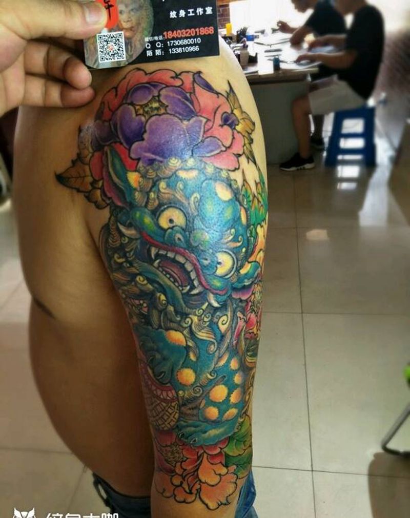 当前位置: 首页 >河北省邯郸市纹身店-帝易纹身总师父店纹身图案>小唐狮子纹身图片_肩部传统动物原创成品手稿纹身图案