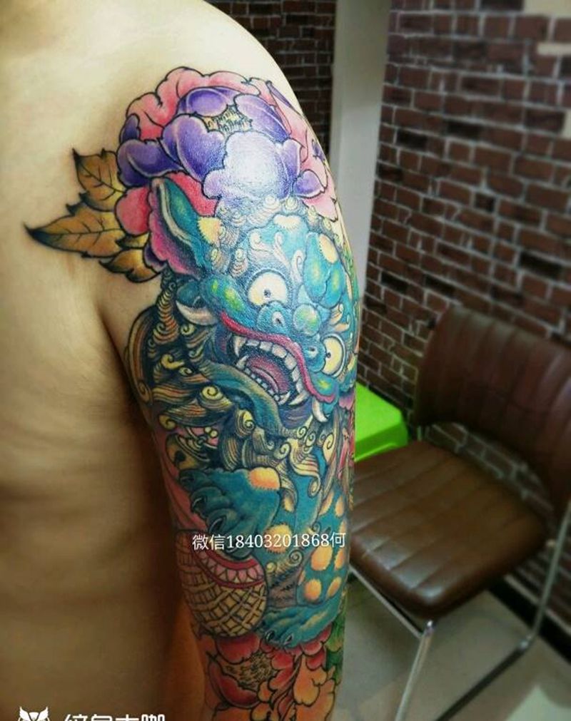 当前位置: 首页 >河北省邯郸市纹身店-帝易纹身总师父店纹身图案>小唐狮子纹身图片_肩部传统动物原创成品手稿纹身图案