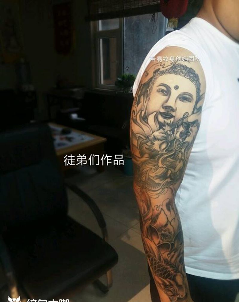 当前位置: 首页 >河北省邯郸市纹身店-帝易纹身总师父店纹身图案>花臂纹身图片_肩部手臂传统动物人物纹身图案