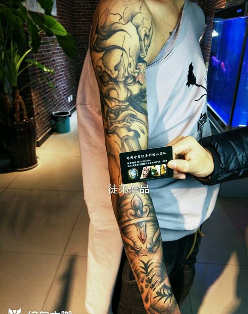 当前位置: 首页 >河北省邯郸市纹身店-帝易纹身总师父店纹身图案>特价花臂纹身图片_肩部手臂手部传统几何动物成品纹身图案