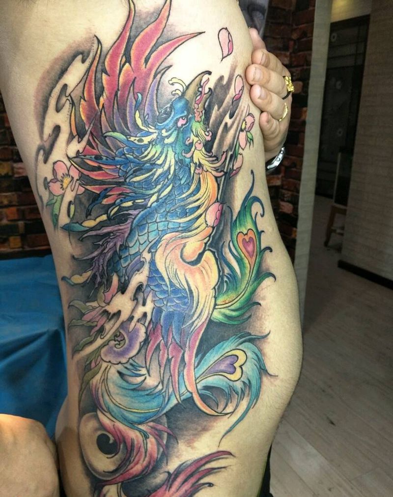 • T网红王老大花腿龙纹身图片_腿部新传统纹身图案