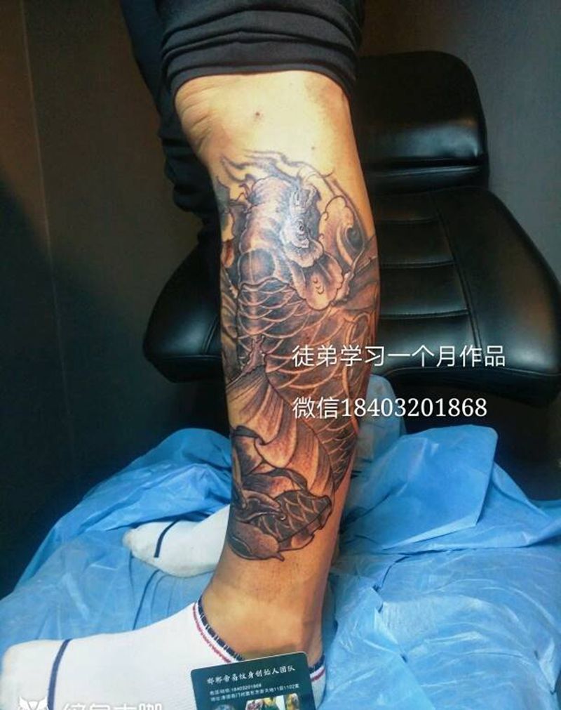 当前位置: 首页 >河北省邯郸市纹身店-帝易纹身总师父店纹身图案>小腿鱼纹身图片