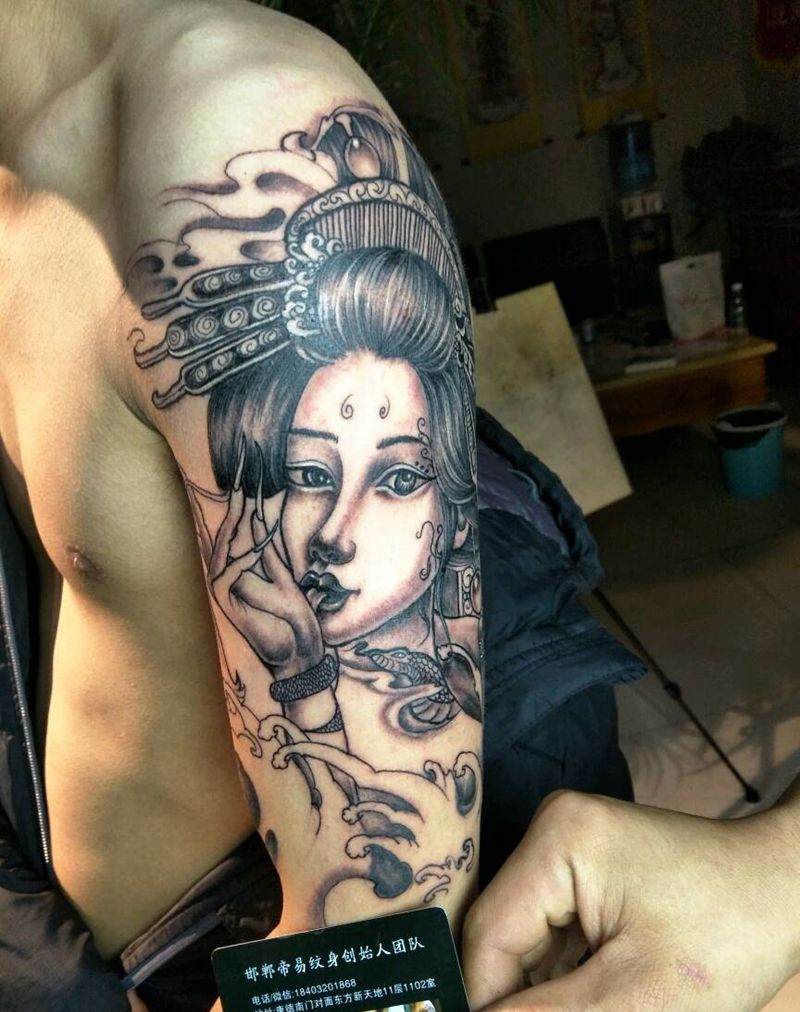 当前位置: 首页 >河北省邯郸市纹身店-帝易纹身总师父店纹身图案>艺妓蛇精纹身图片