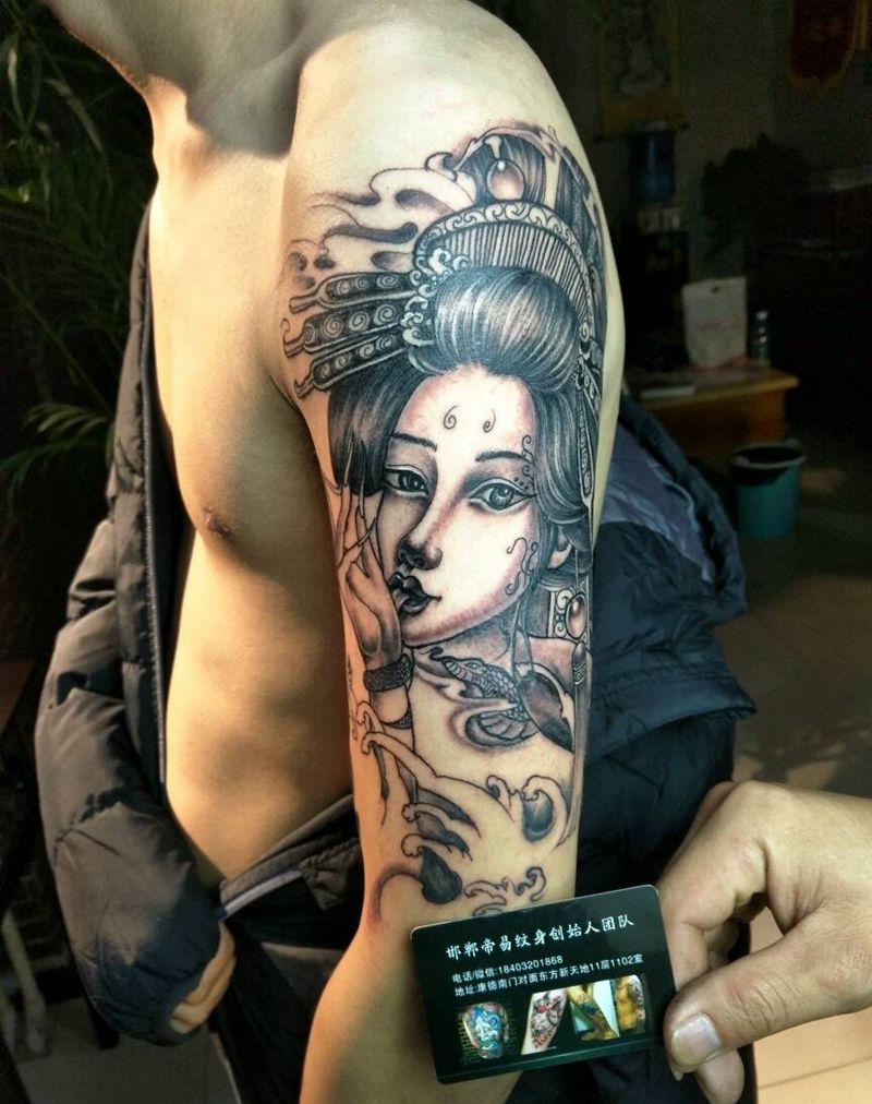 当前位置: 首页 >河北省邯郸市纹身店-帝易纹身总师父店纹身图案>艺妓蛇精纹身图片