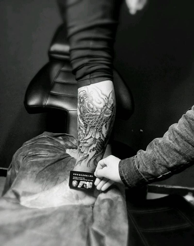 • T网红王老大花腿龙纹身图片_腿部新传统纹身图案