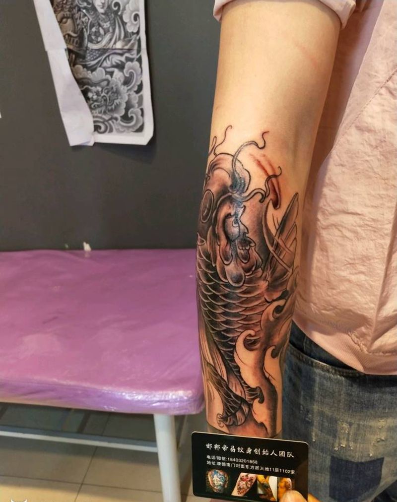 当前位置: 首页 >河北省邯郸市纹身店-帝易纹身总师父店纹身图案>鱼纹身图片_手臂传统动物成品纹身图案