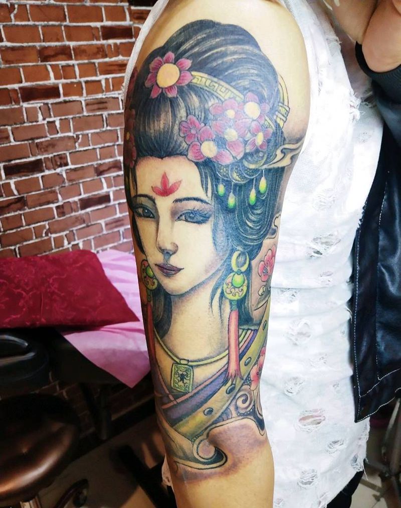 暴力遮盖,实在没办法用头发盖的纹身图片_手臂传统人物纹身图案