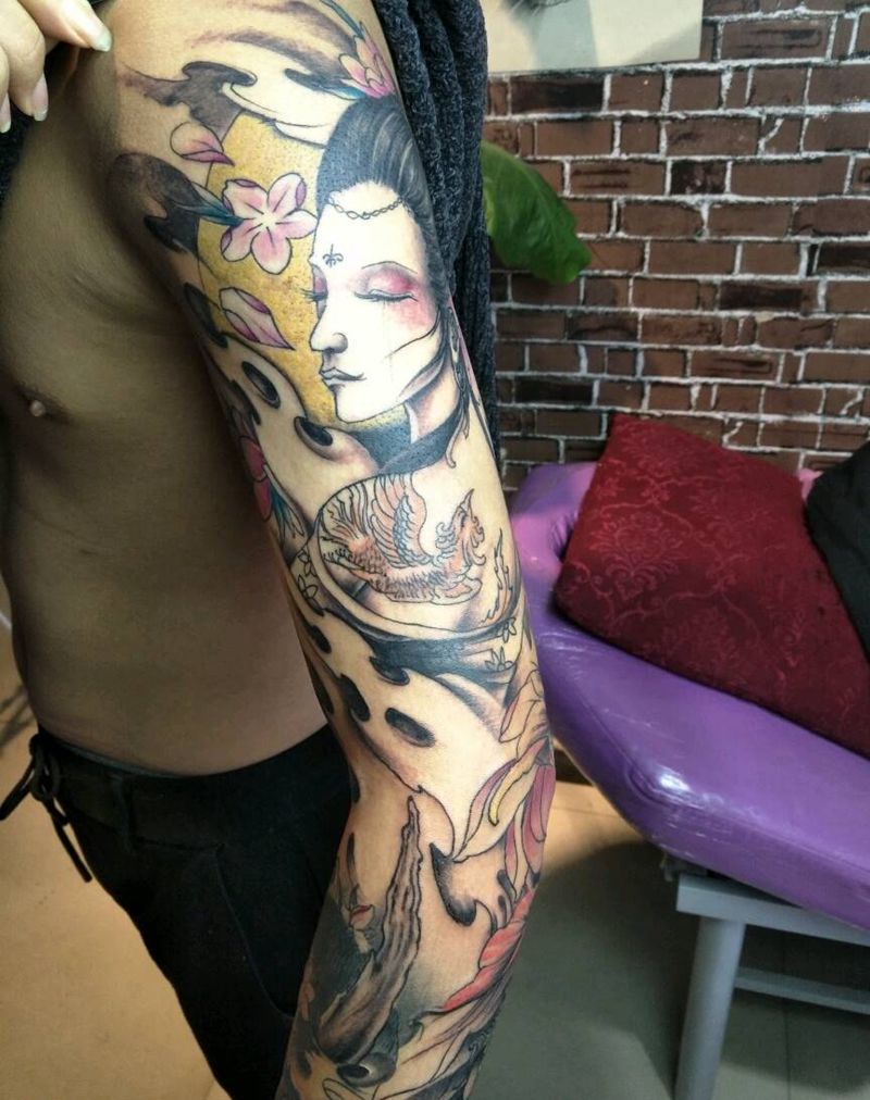 当前位置: 首页 >河北省邯郸市纹身店-帝易纹身总师父店纹身图案>徒弟修改别人做的线条,上色打雾纹身图片_手臂传统人物鬼神成品纹身图案