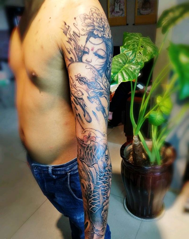 当前位置: 首页 >河北省邯郸市纹身店-帝易纹身总师父店纹身图案>花臂纹身图片_手臂传统动物人物成品纹身图案