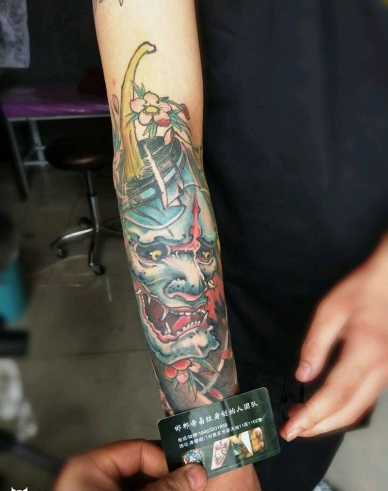 当前位置: 首页 >河北省邯郸市纹身店-帝易纹身总师父店纹身图案>般若纹身图片_手臂传统鬼神成品纹身图案