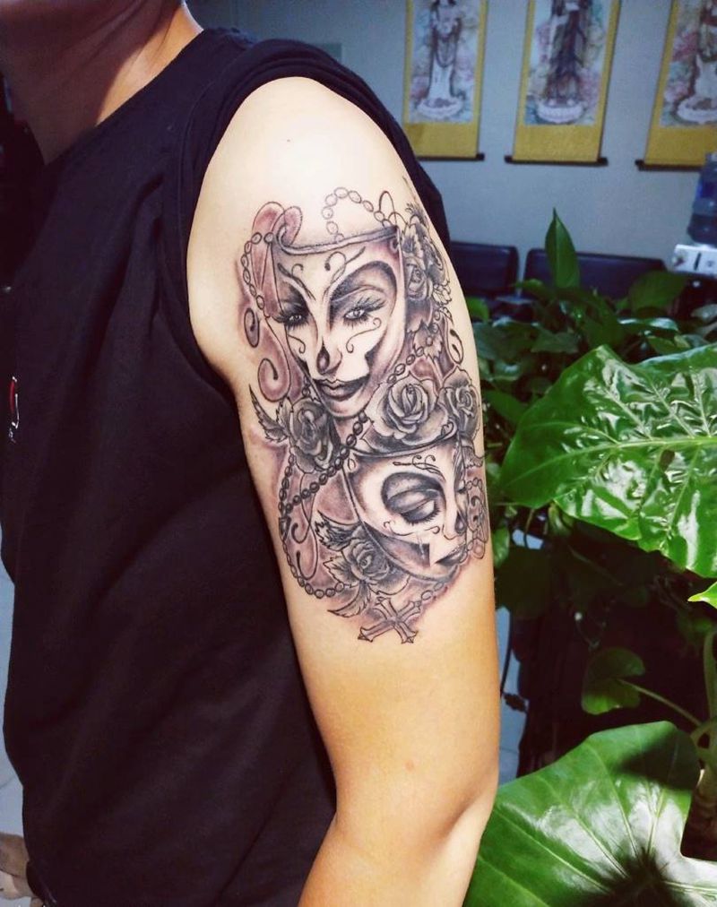 • 纹身吧推荐的披肩图腾半胛纹身图案作品展示