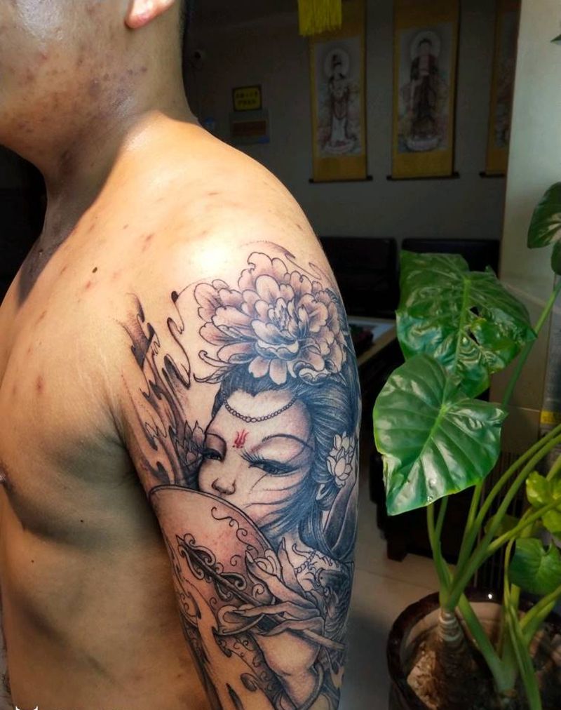 艺妓纹身图片_手臂传统人物成品纹身图案