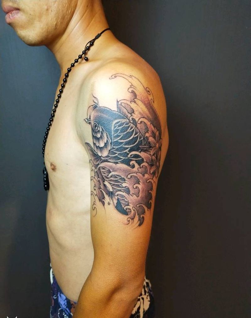 懒得批图,遮盖纹身图片_手臂新传统鱼纹身图案