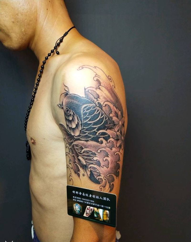 懒得批图,遮盖纹身图片_手臂新传统鱼纹身图案