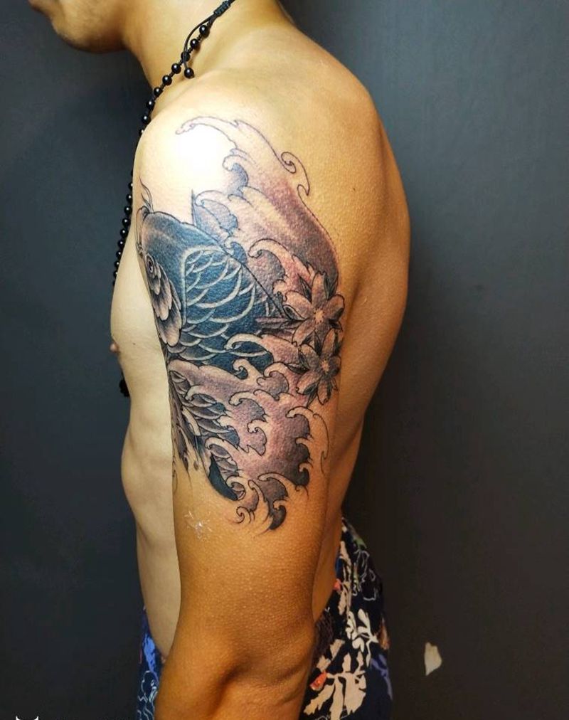 懒得批图,遮盖纹身图片_手臂新传统鱼纹身图案