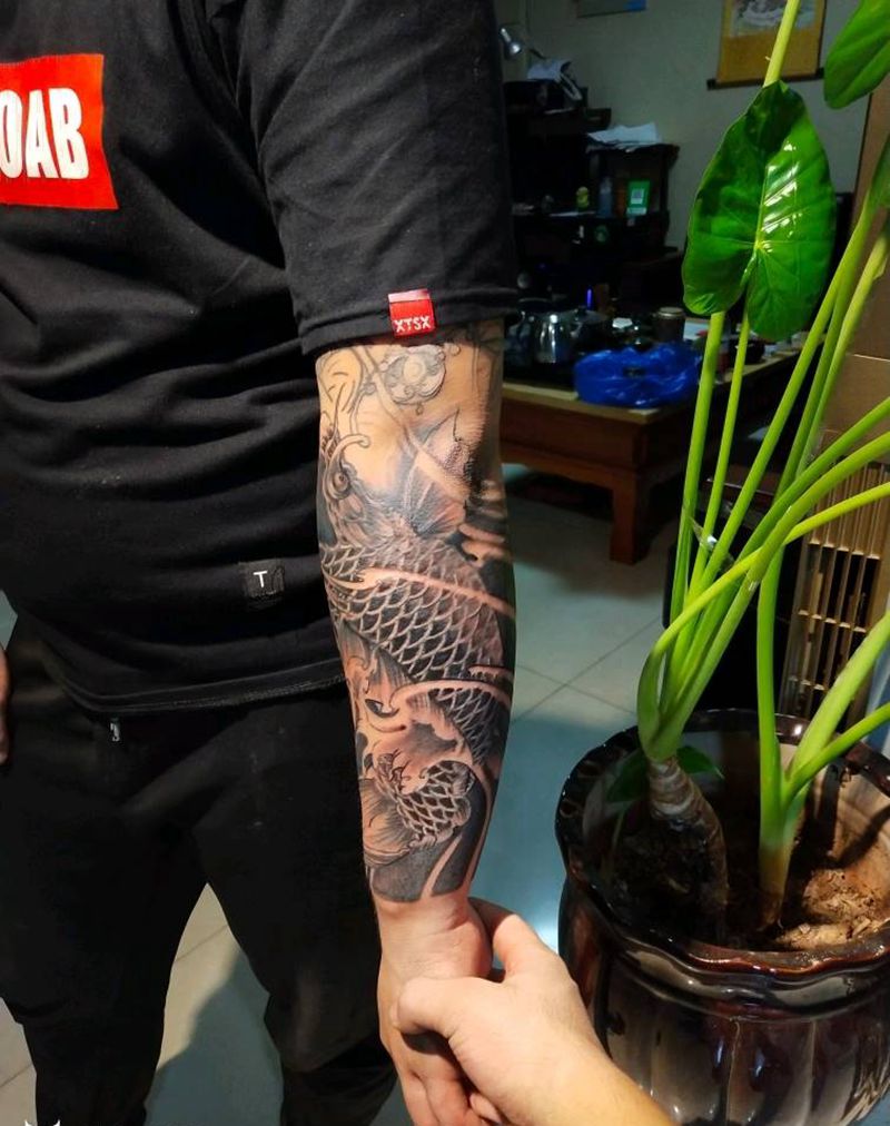 当前位置: 首页 >河北省邯郸市纹身店-帝易纹身总师父店纹身图案>鱼纹身图片_手臂新传统包小臂纹身图案