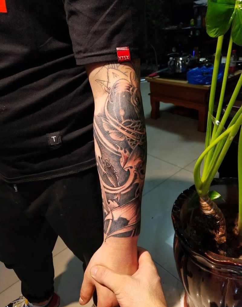 当前位置: 首页 >河北省邯郸市纹身店-帝易纹身总师父店纹身图案>鱼纹身图片_手臂新传统包小臂纹身图案