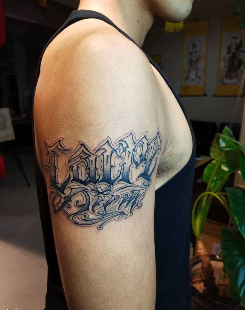 花体英文纹身图片_肩部花体英文纹身图案