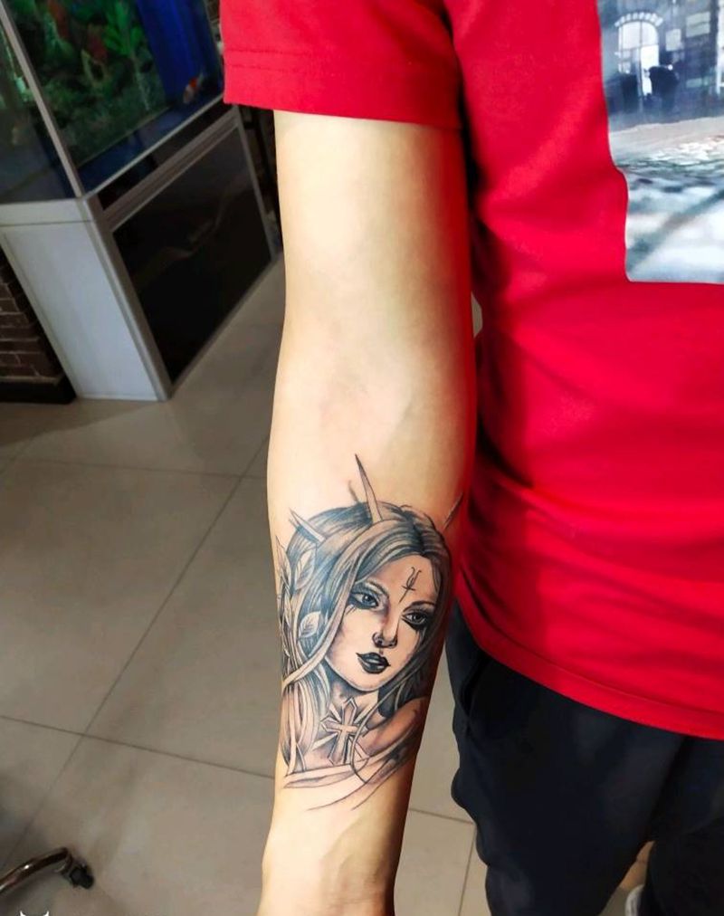 当前位置: 首页 >河北省邯郸市纹身店-帝易纹身总师父店纹身图案>外国美女纹身图片_手臂欧美写实纹身图案