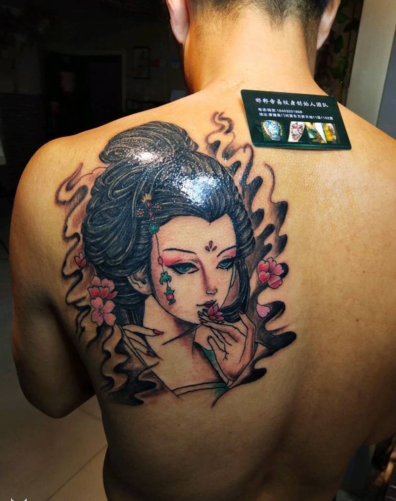 艺妓纹身图片_肩部新传统艺妓纹身图案