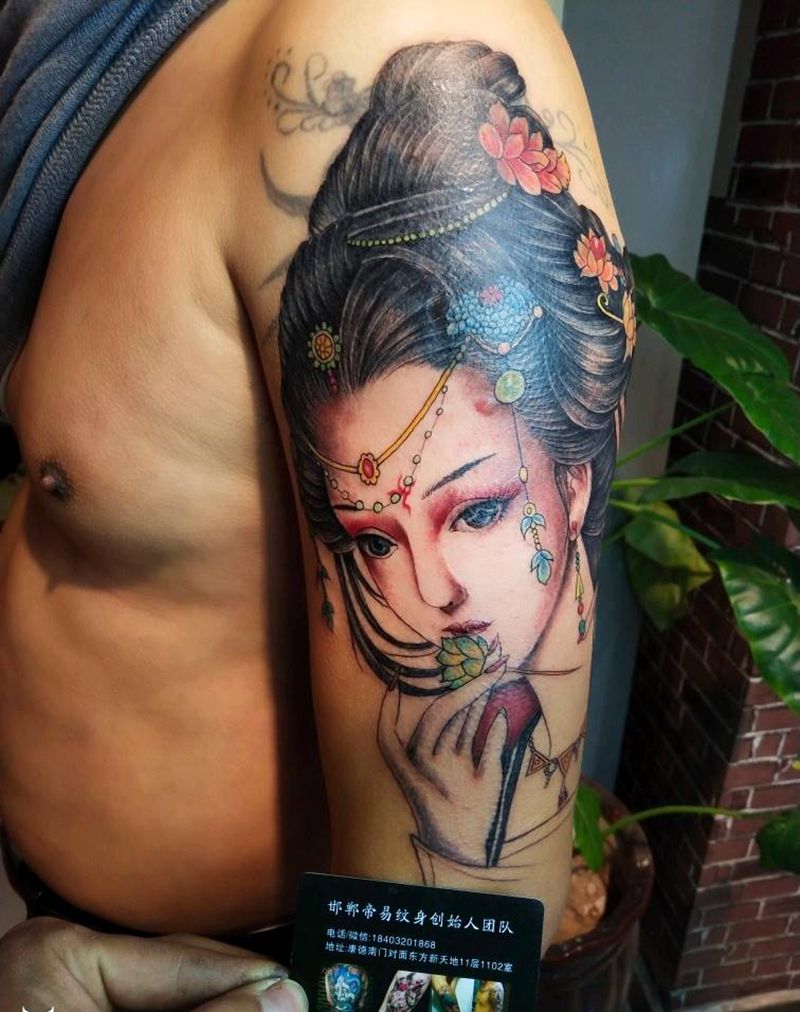 艺妓纹身图片_肩部新传统艺妓纹身图案