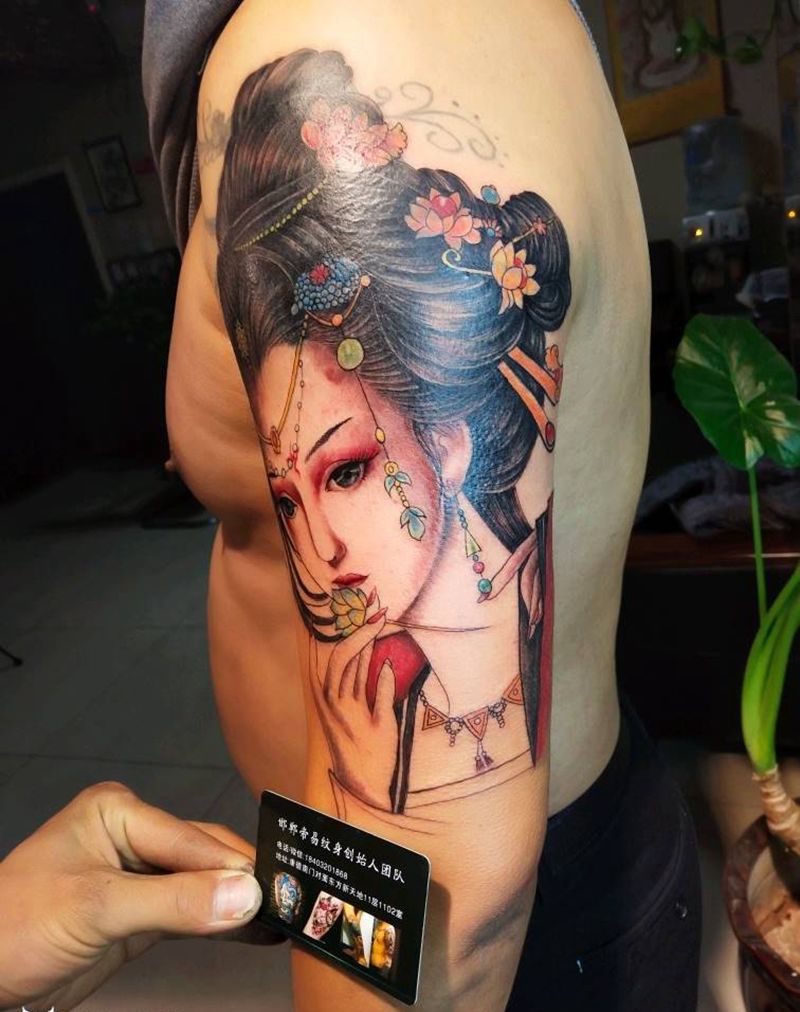艺妓纹身图片_肩部新传统艺妓纹身图案
