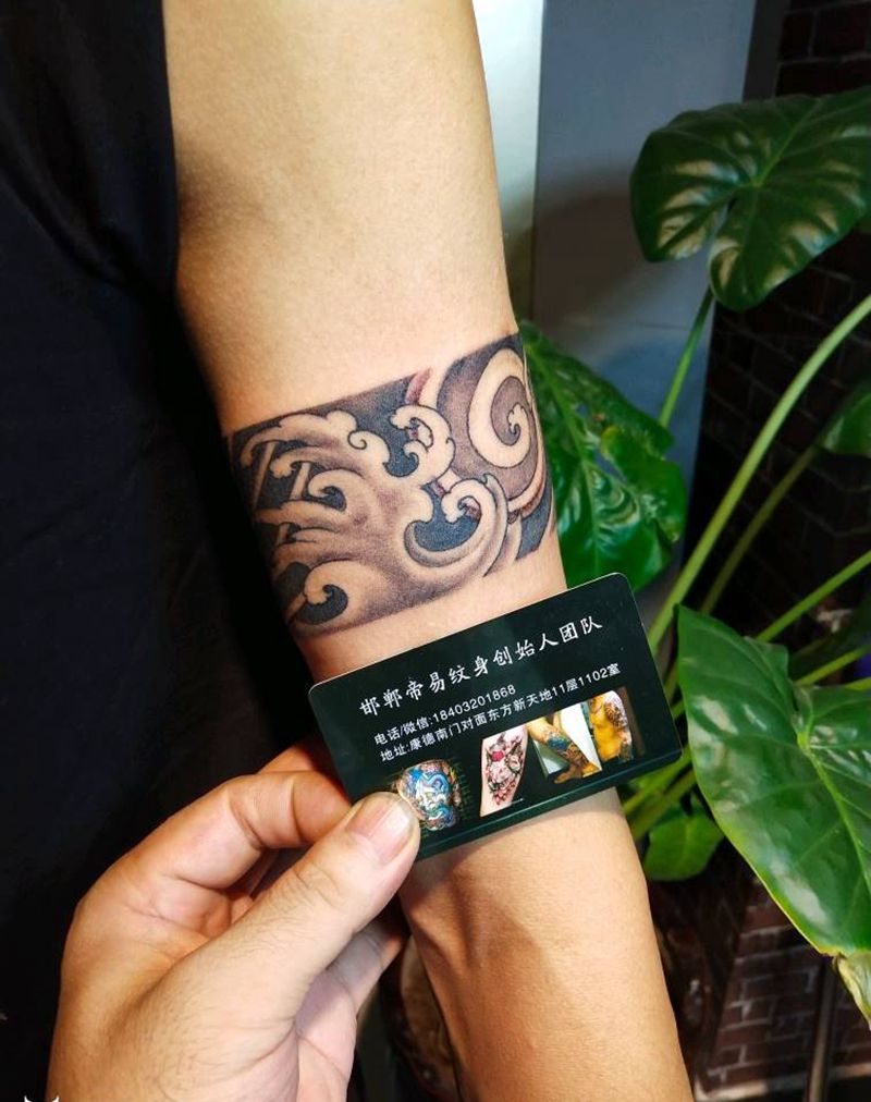 当前位置: 首页 >河北省邯郸市纹身店-帝易纹身总师父店纹身图案>臂环纹身图片_传统字符原创成品手稿纹身图案