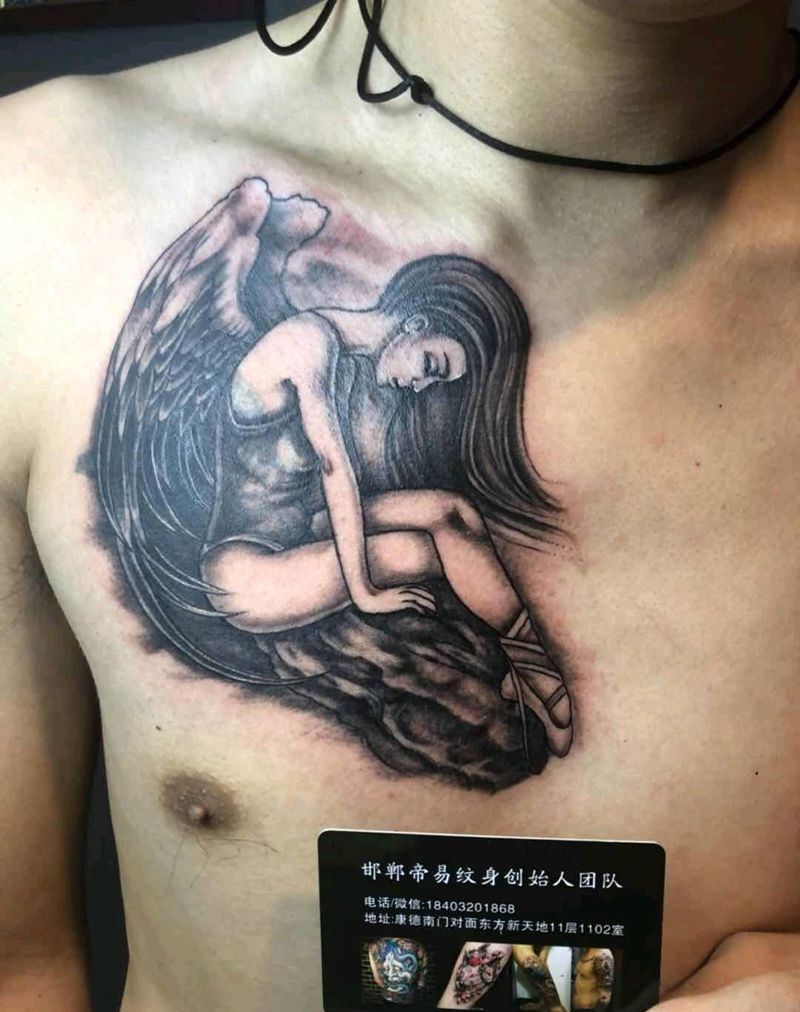 当前位置: 首页 >河北省邯郸市纹身店-帝易纹身总师父店纹身图案>光屁股天使遮盖纹身图片_胸部欧美写实Old School天使纹身图案